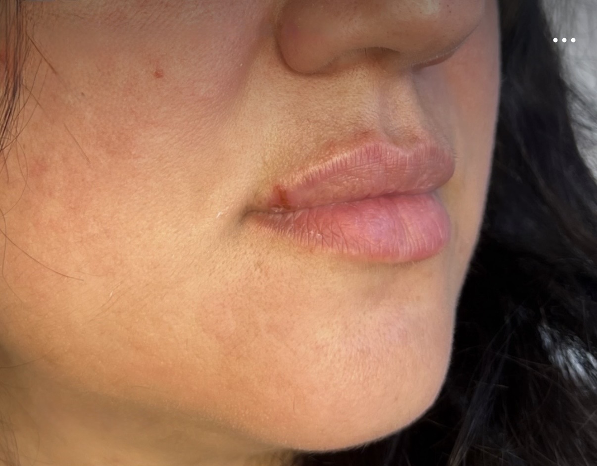 Før og efter resultat af læbefiller behandling, sæt to, billede et